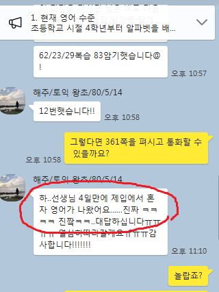 질문자 같은 학습자들 이곳에 <<학원 수강료로> 편안한 요일과 편안한 시간에 1:1로 24시간 배울 수 있고, 24시간 자유롭게 질문하고 보이스톡으로 피드백 하면서 단기간에 목표를 달성케 해드리는 전문가가 있으니 참고하세요.