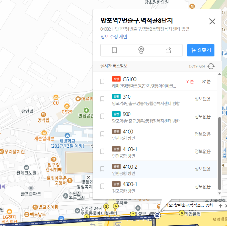 망포역 7번 출구 벽적골8단지 버스정류장 위치
