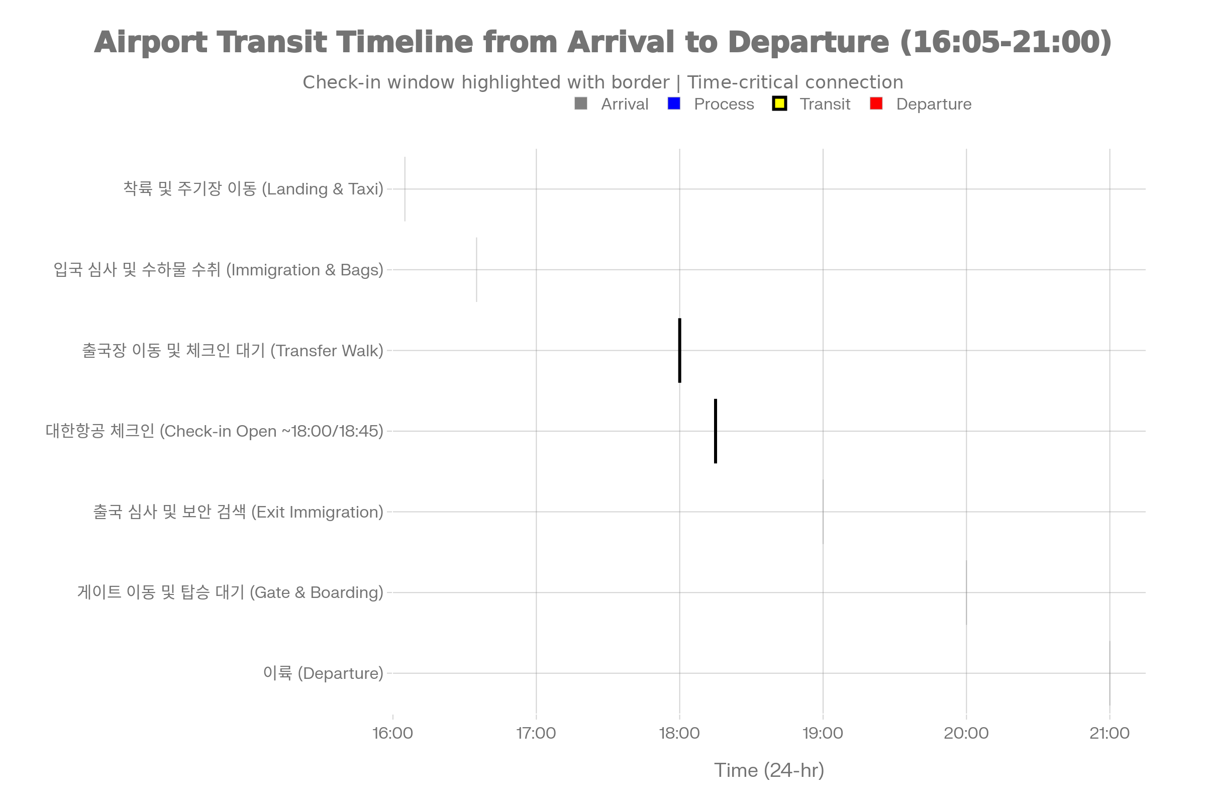 1. 환승 예상 타임라인 (여유 시간 약 5시간)