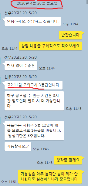 고3. 3등급 1달 수강하여 모의고사 1등급(모의고사 날짜 확인 요망)
