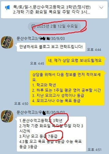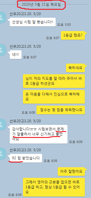 어떻게 공부하는지 카톡 공부 내용을 충분히 첨부할 테니 꼼꼼히 읽어보세요. 중.고생 후기는 카테고리 1번의 (8/9)번에 모두 들어 있고 7~9등급들의 후기는 (6)번에 들어있습니다.