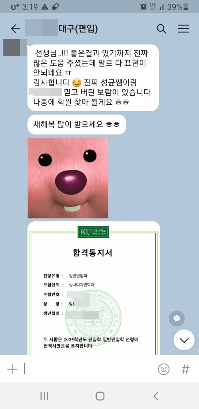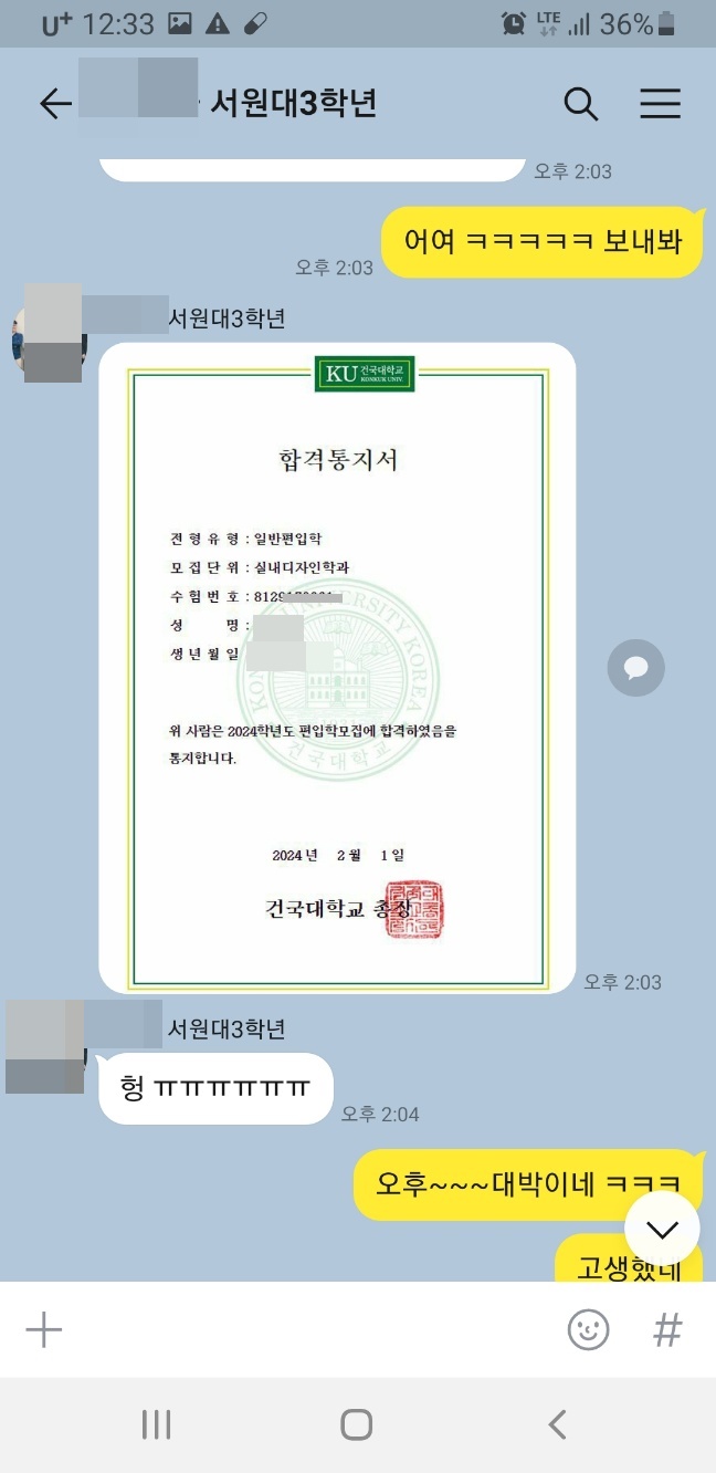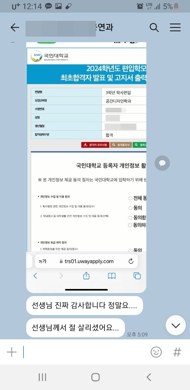 위에 학생은 비전공자였고, 대구에서 올라와서 1년간 편입준비해서 작년에 건국대