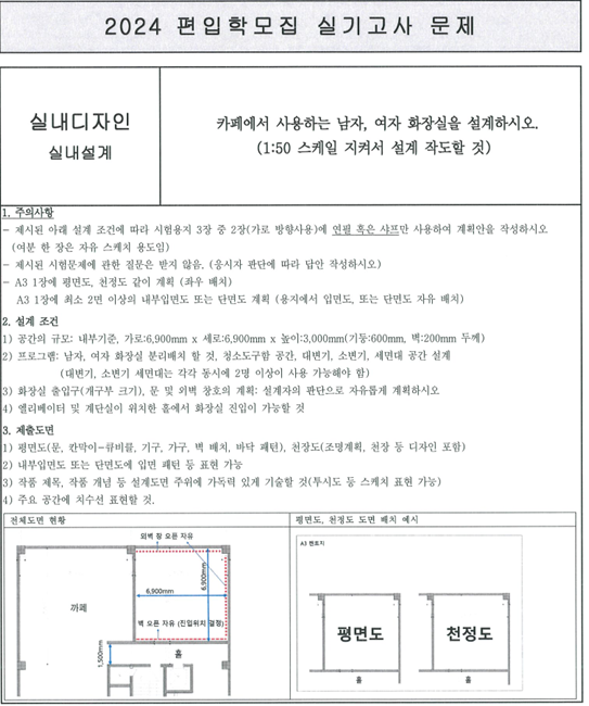 실내건축디자인편입은 각 대학별로 편입시험이 각각 다르기때문에