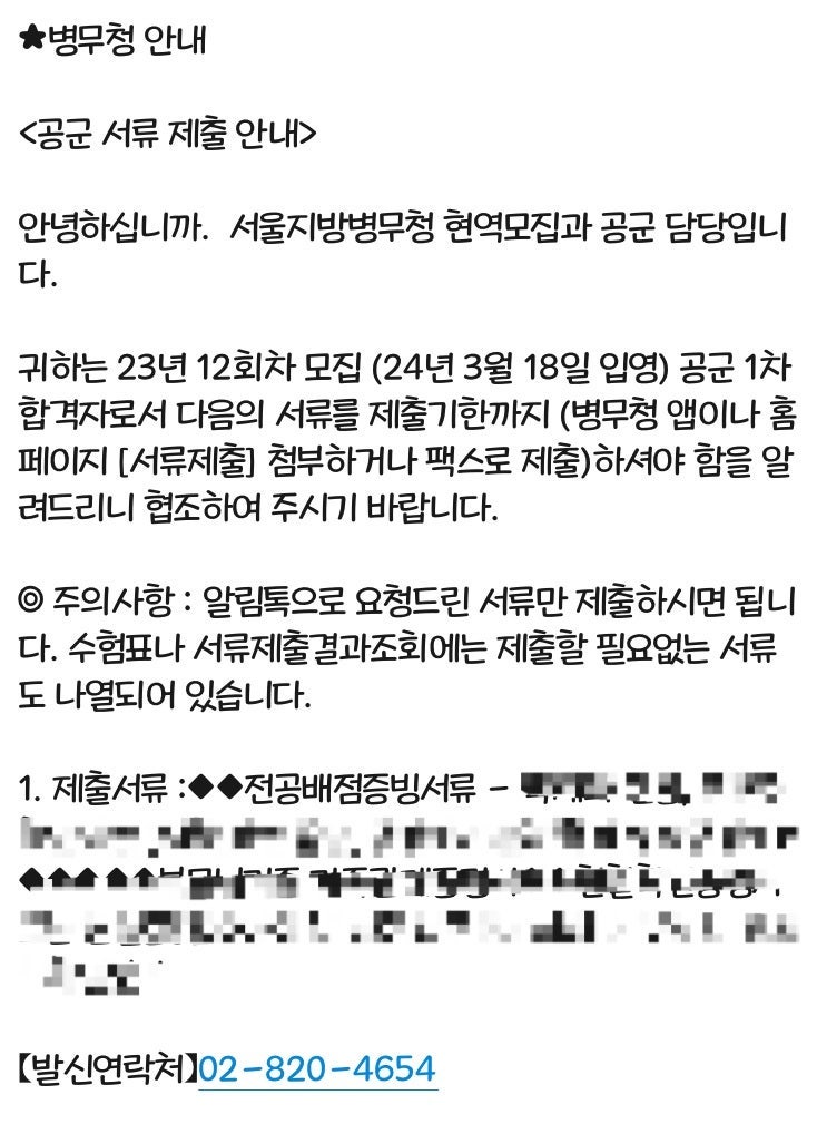 병무청이 각 db에 있는거 확인해보고 없는거 있으면 문자가 갈겁니다