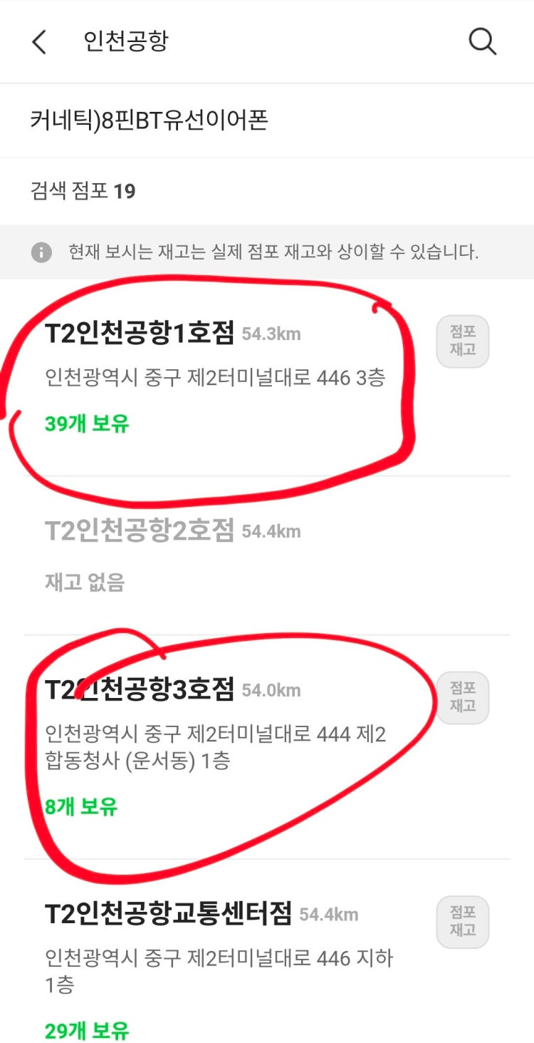인천공항T2터미널 8핀 이어폰 안녕하세요! 인천공항 2터미널에서 출국 예정인 사람입니다! 8핀이어폰을 구매해야하는데 2터미널에 구매할