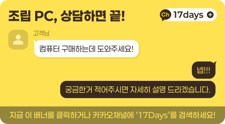 구매에 확신을 드리는 14년차 게이밍 / 방송 컴퓨터 전문 쇼핑몰 17Days입니다.