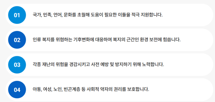 사회적 약자들의 복지 증진, 공동체의 소통과 화합을 위해 다각적 활동을 하고있는 글로벌 복지단체 입니다.