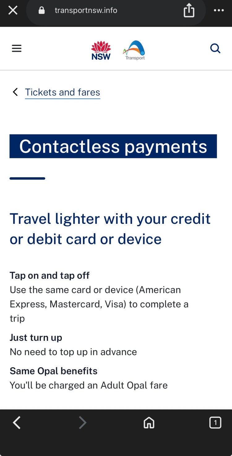 호주의 대부분 지역에서 이제 컨택리스(와이파이 모양 아이콘)페이로 교통대금 결제가 가능해요. 불안해하시는거 같아 시드니 교통카드 공홈에서 스크린샷 가져왔어요.